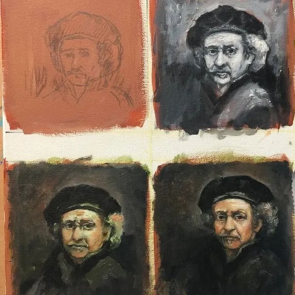 Sketch/ Values / Underpainting / Glazing / Scumbling / Painting.